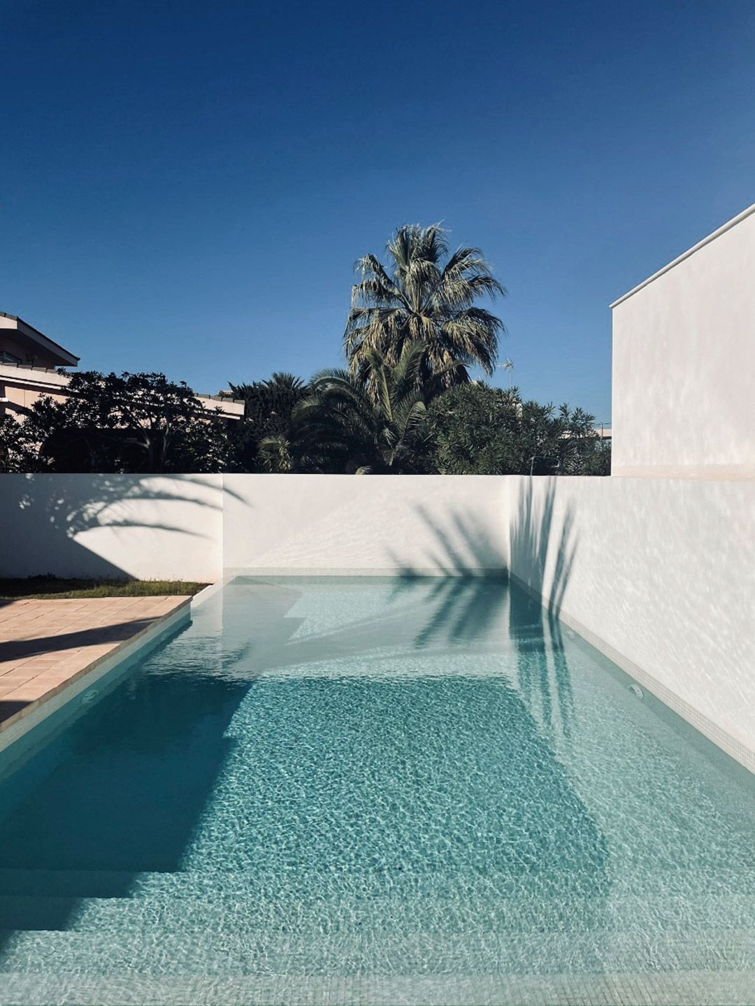 Busca crear un oasis en medio de una zona heterogénea de viviendas unifamiliares. La parcela, sin unas vistas interesantes a las que abrirse, se cierra en si misma. El recuerdo de un riad, un pueblo pesquero del norte de áfrica o las masserias de la Puglia italiana inspiran una arquitectura que persigue la discreción, generando sus espacios más íntimos al abrigo de las miradas.