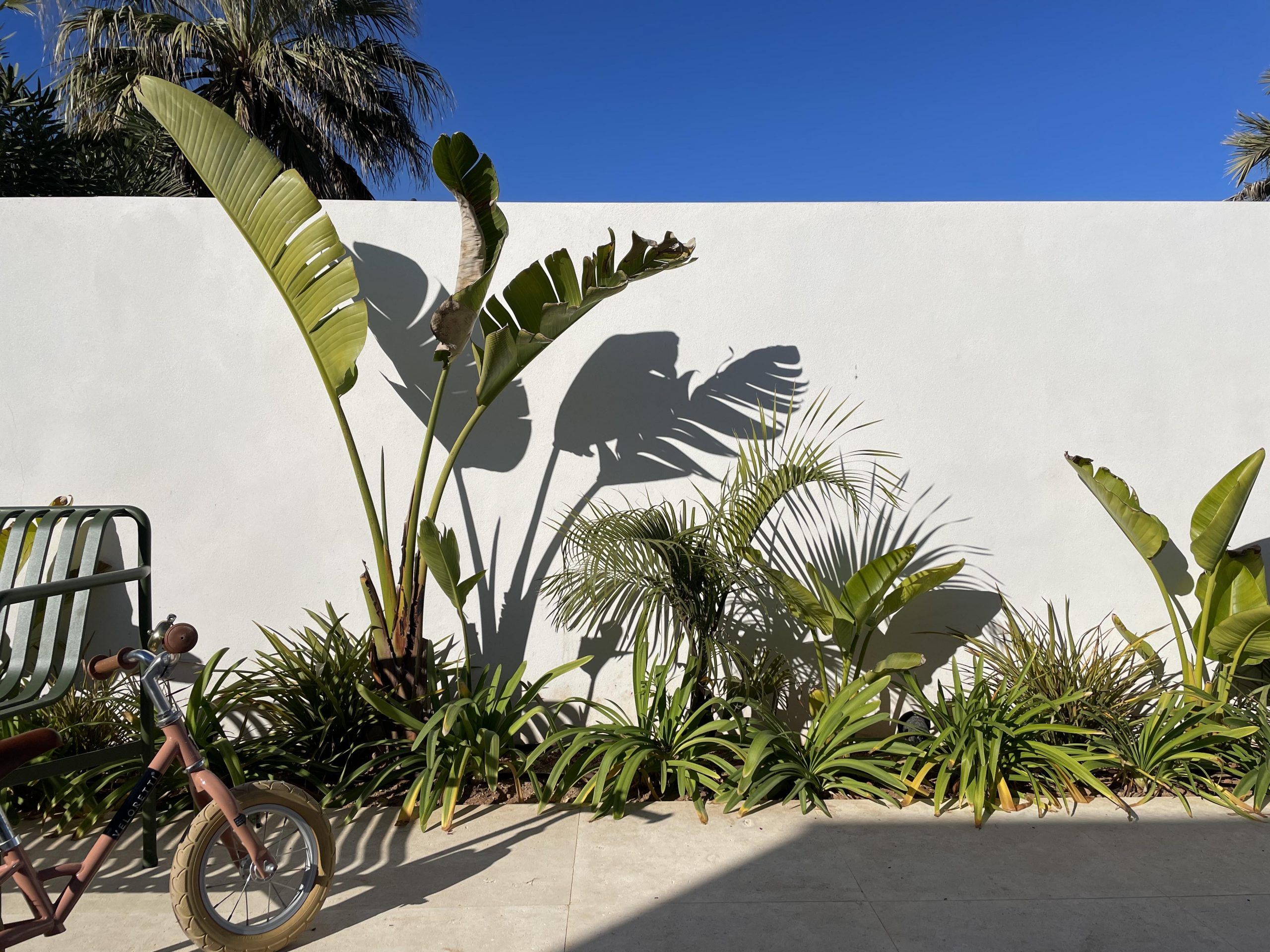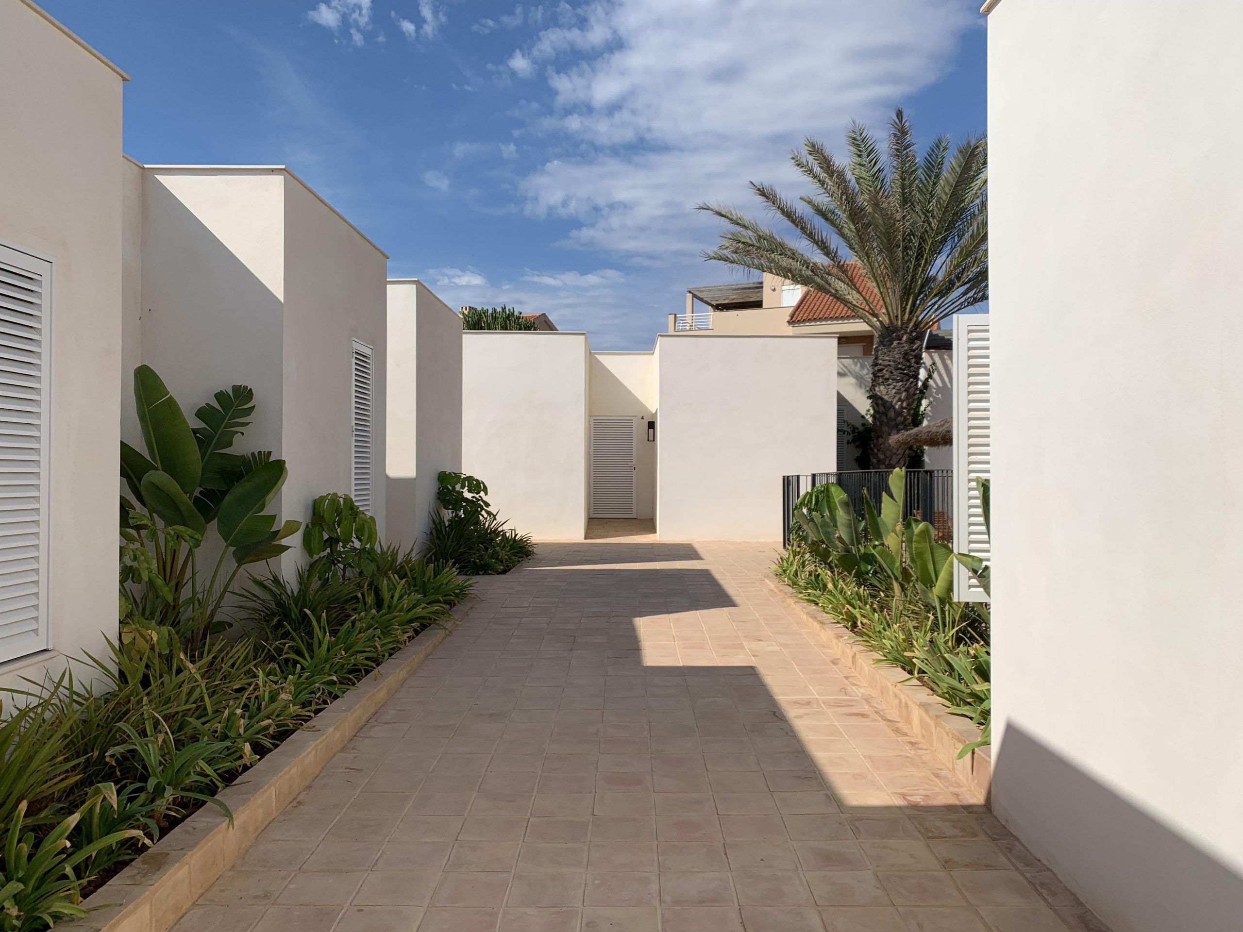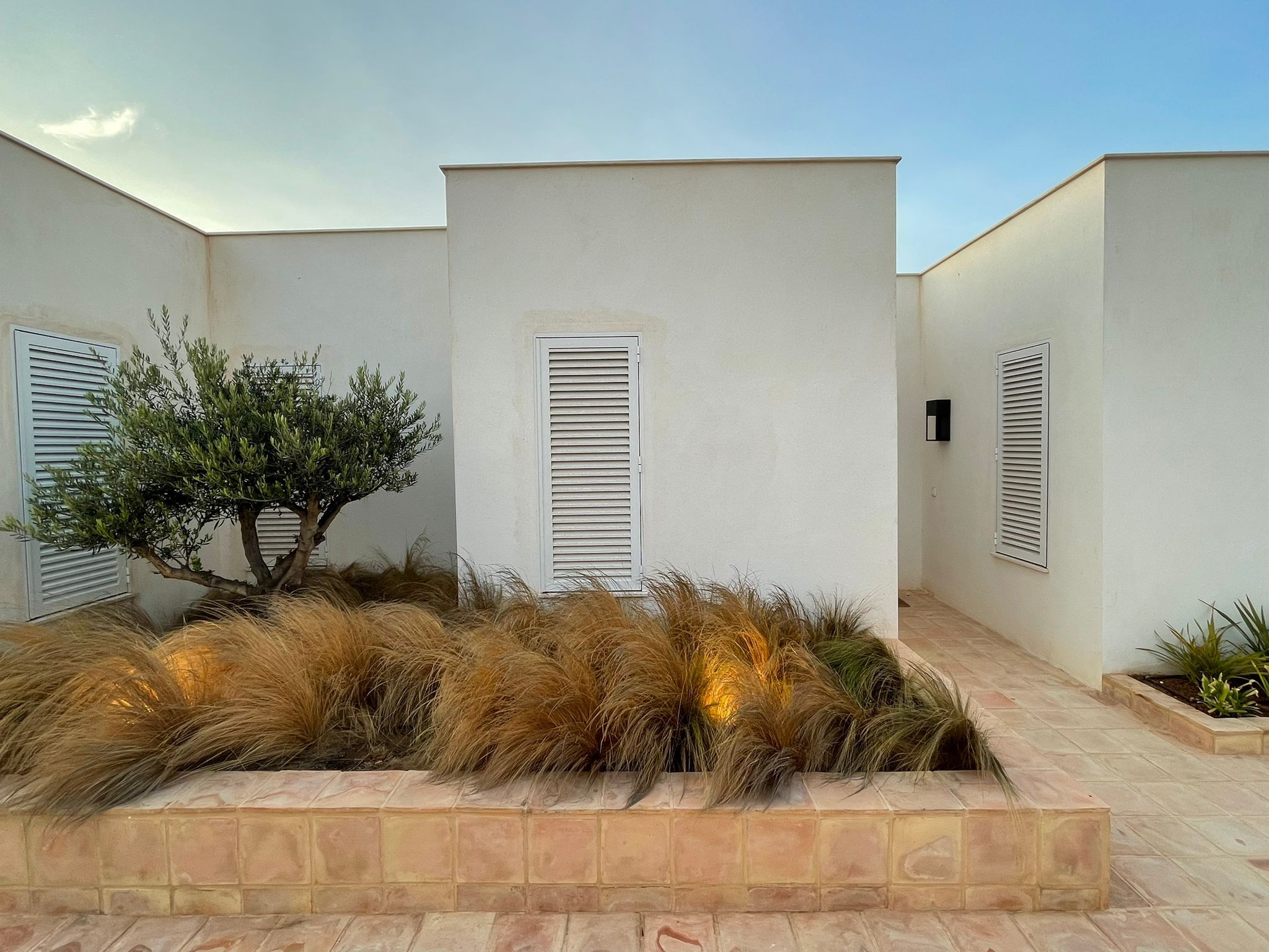Una arquitectura tradicional mediterránea, de escala deliberadamente humana y construida a través de patios y sombras, que crea un recorrido de escala ajustada en el que la vegetación cobra un protagonismo decisivo.