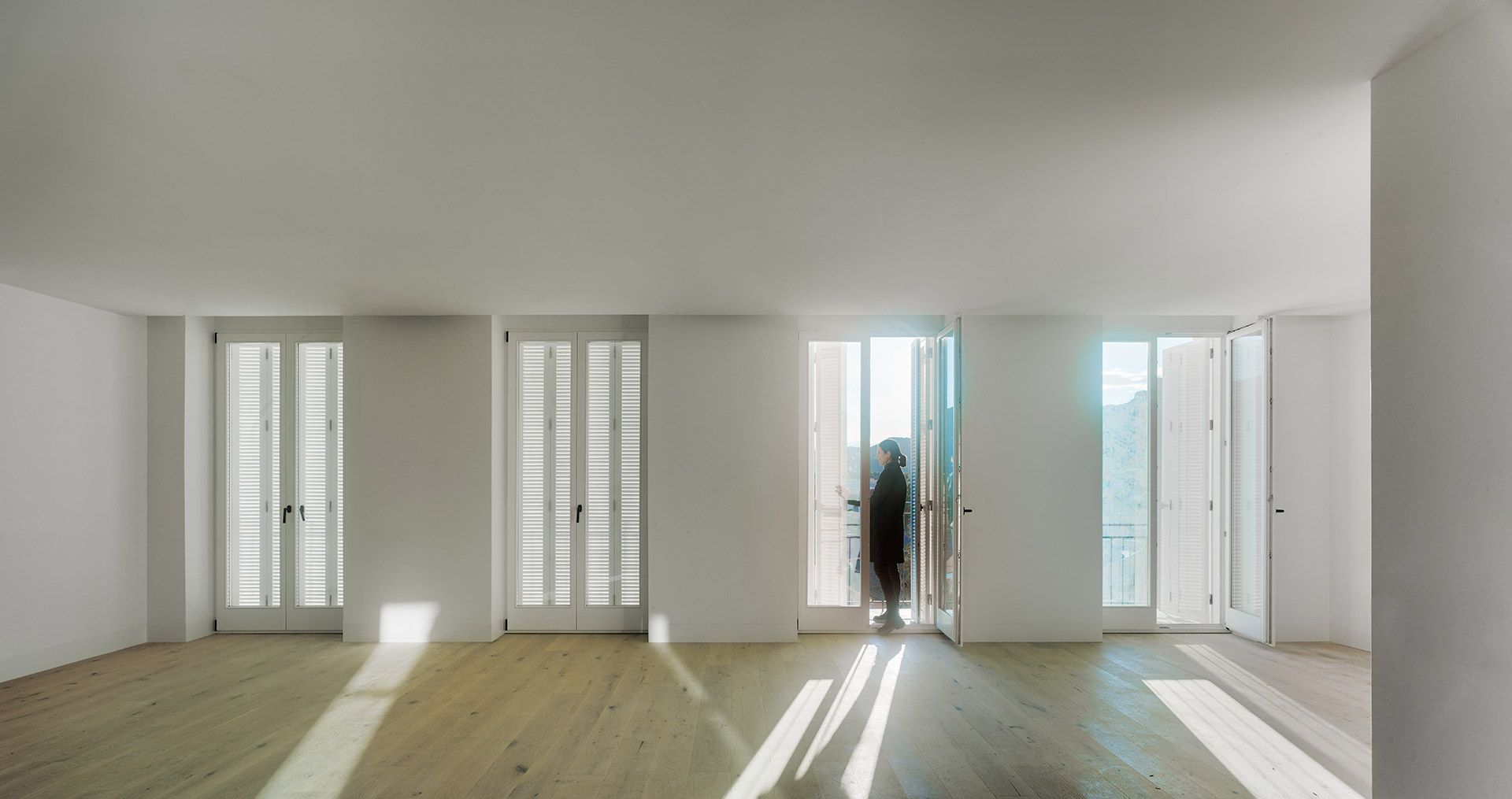Materiales locales y tradicionales como el estuco de cal en la fachada, el revoco de piedra proyectada, la piedra caliza local en los solados y alicatados de baños interiores o mallorquinas para la protección solar, son los recursos para proyectar una arquitectura de principios contemporáneos y arraigo local, que persigue alcanzar los objetivos de sostenibilidad intrínsecos al pensamiento actual mediante el compromiso firme con los materiales de proximidad y las técnicas naturales de ventilación y control solar.