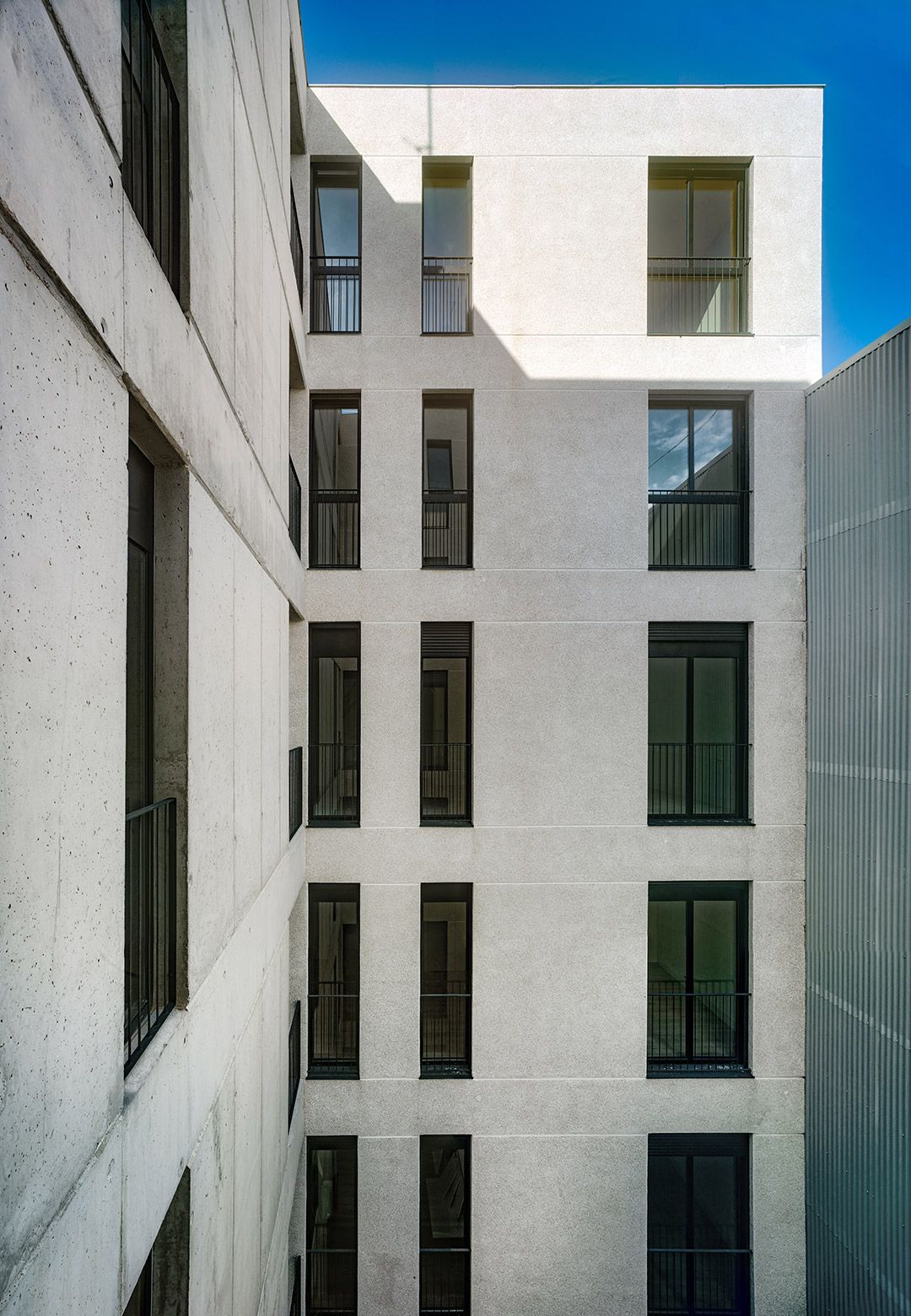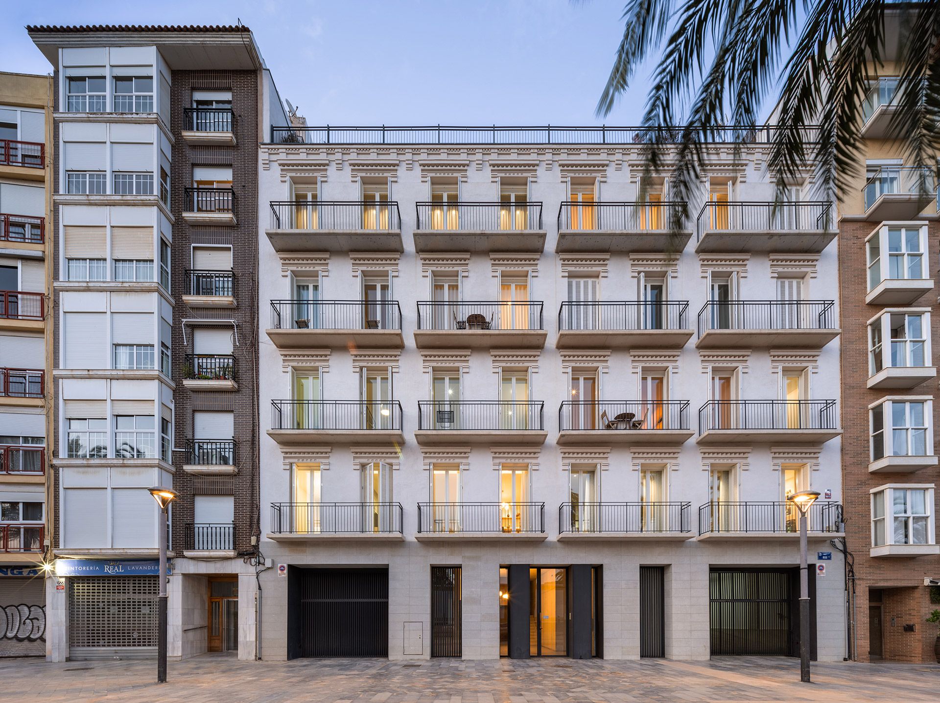 Las zonas de día se vuelcan a la fachada principal: la repetición de los grandes huecos existentes confiere una dimensión señorial a los espacios interiores. Las zonas de noche se abren al patio interior, que se proyecta como un gran espacio central del edificio. Las fachadas del patio se proyectan como fachadas principales y las viviendas se abren al mismo con grandes huecos que permiten la entrada de luz.