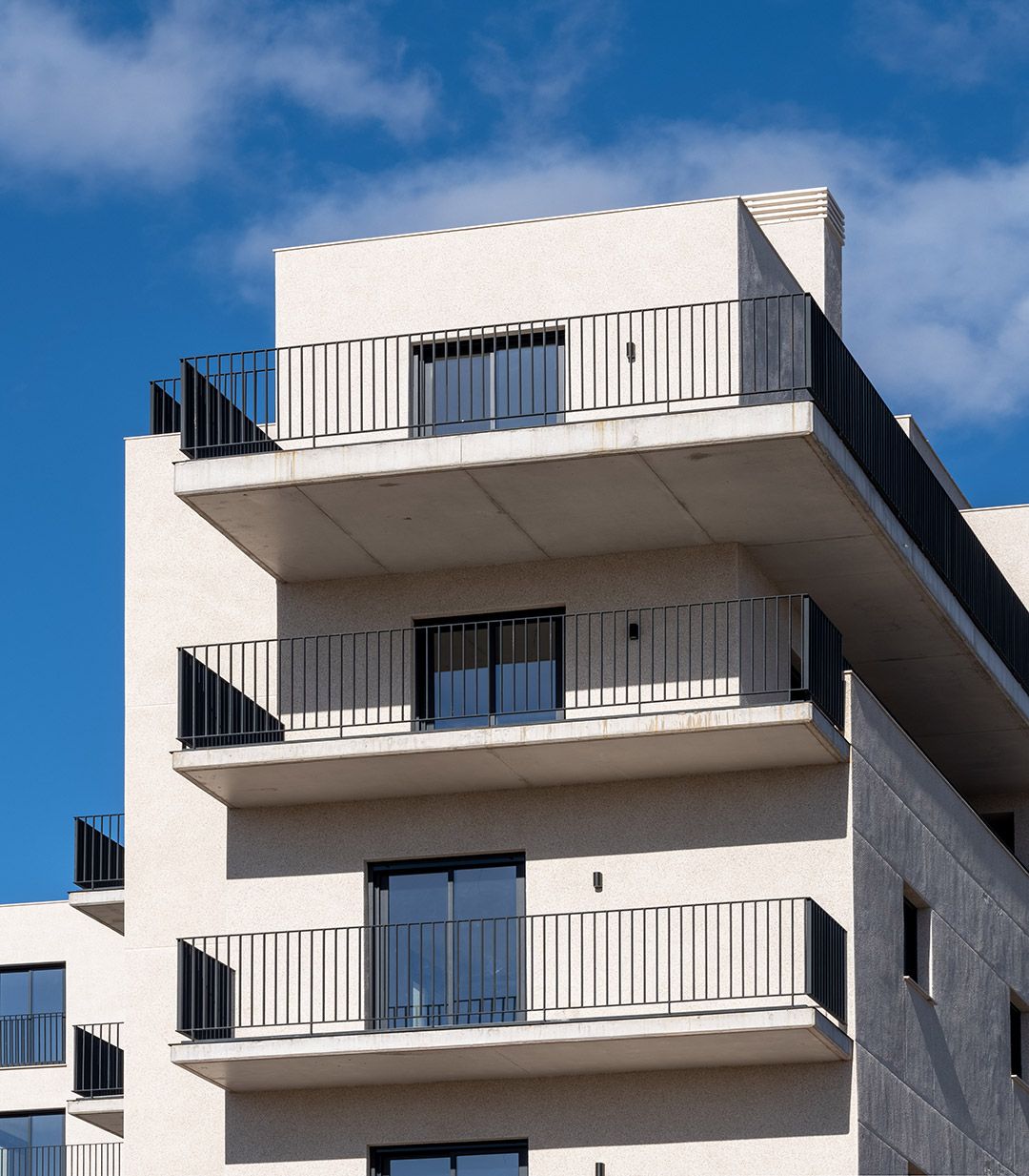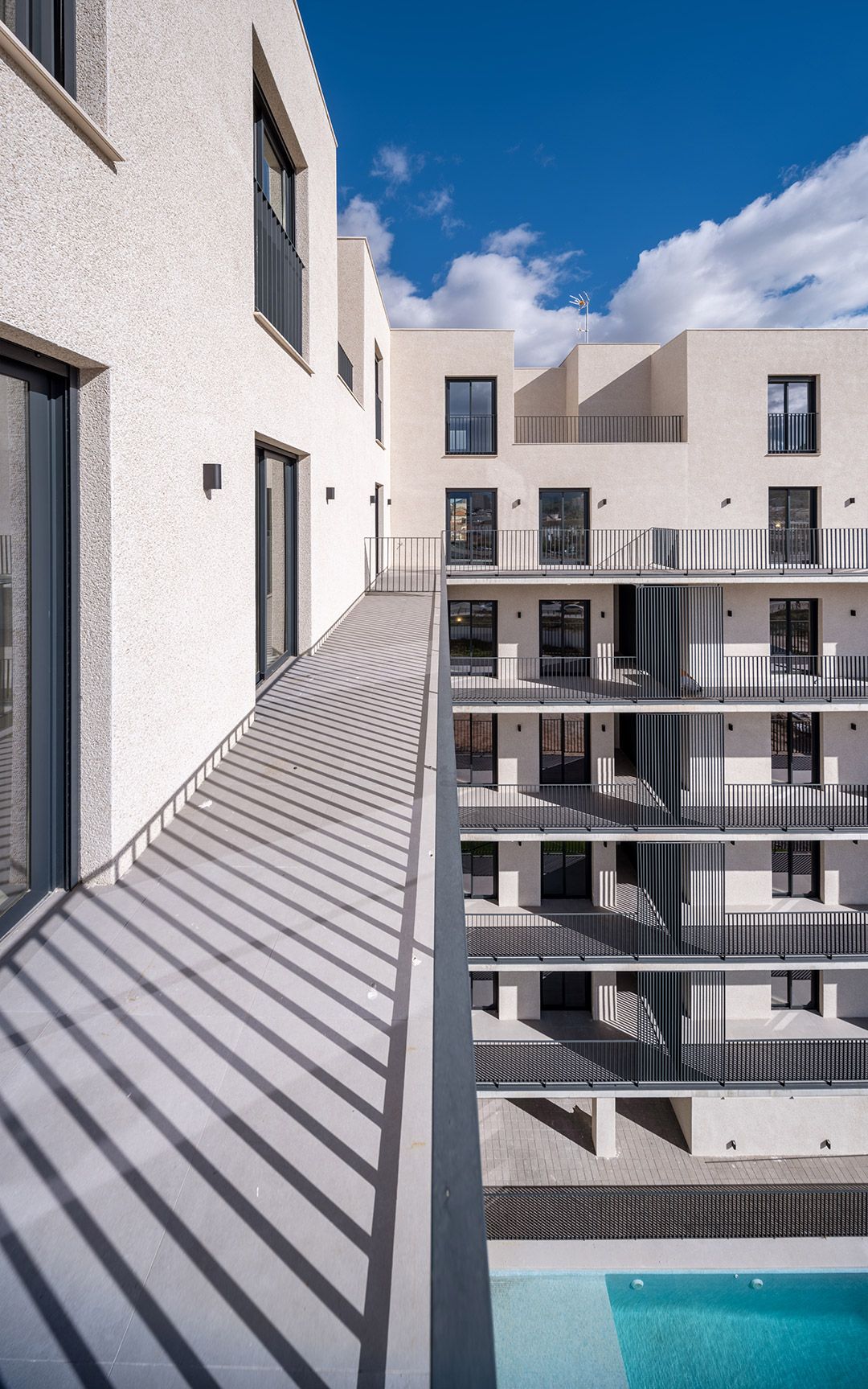 Las terrazas se ubican siempre vinculadas a los salones, para potenciar su uso y la amplitud visual del salón, además de enmarcar las vistas y orientaciones más interesantes, sur y oeste en este caso. Las habitaciones se ubican en la zona norte y levante, con ventanas de menor escala y más relacionadas con la sombra y la quietud.