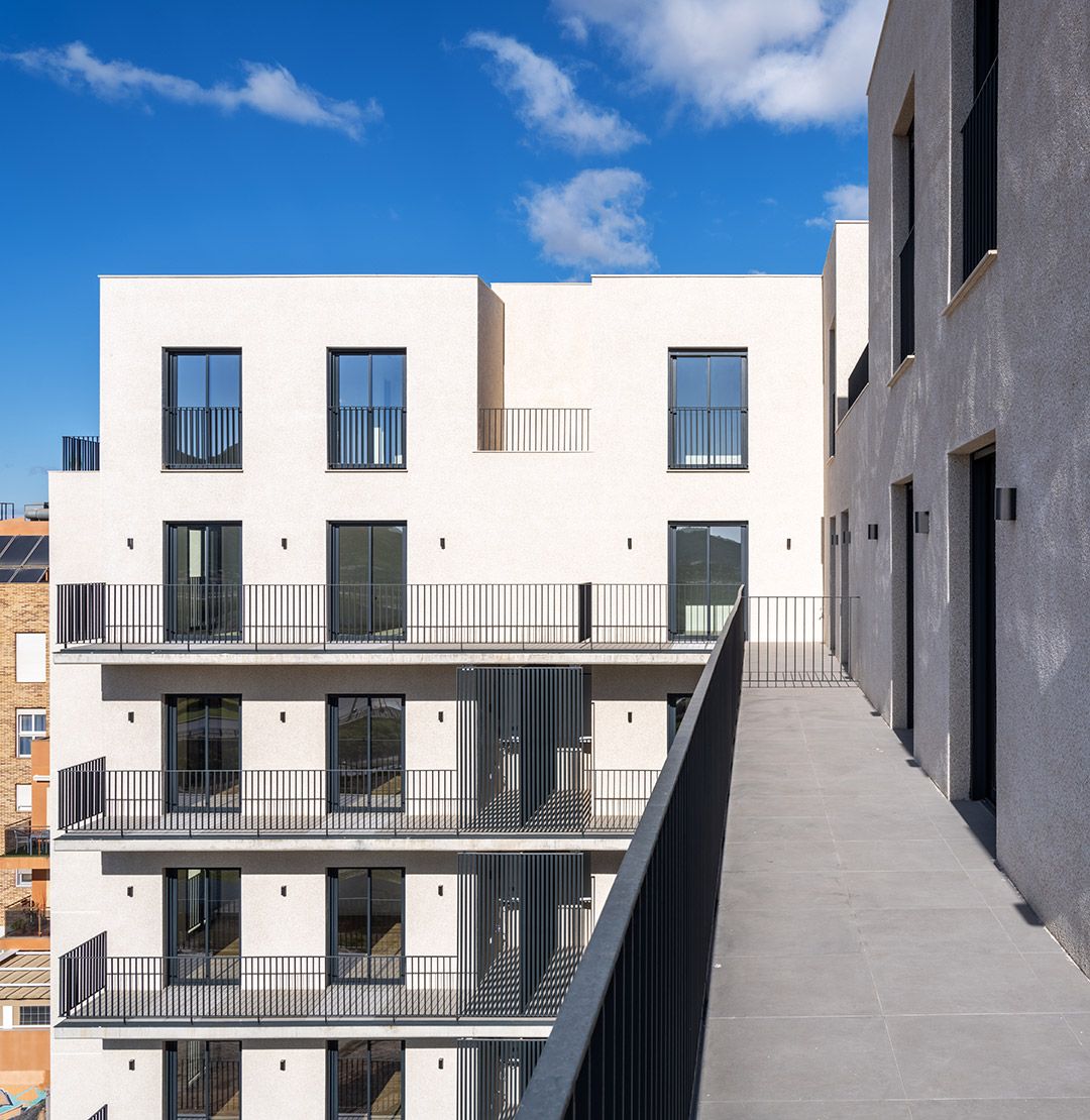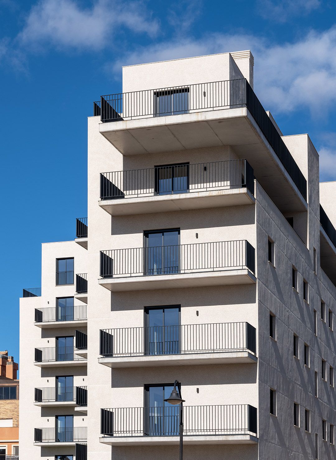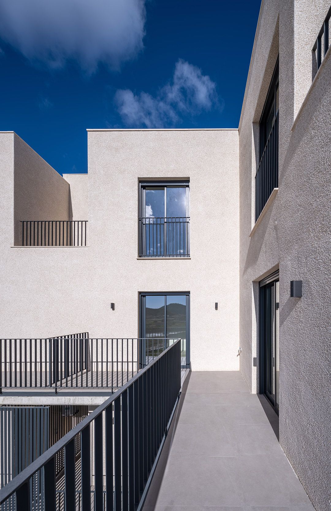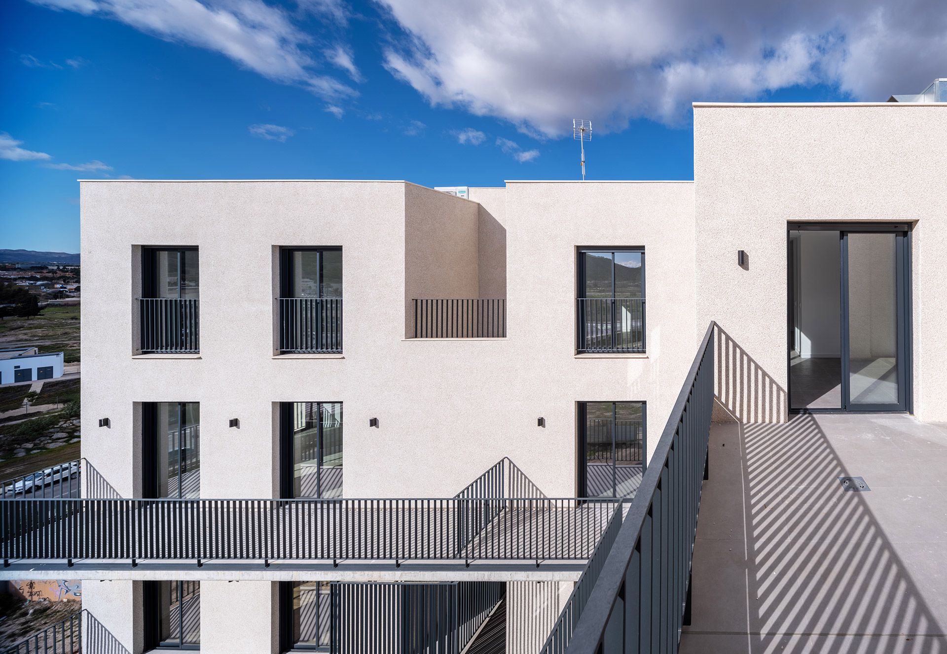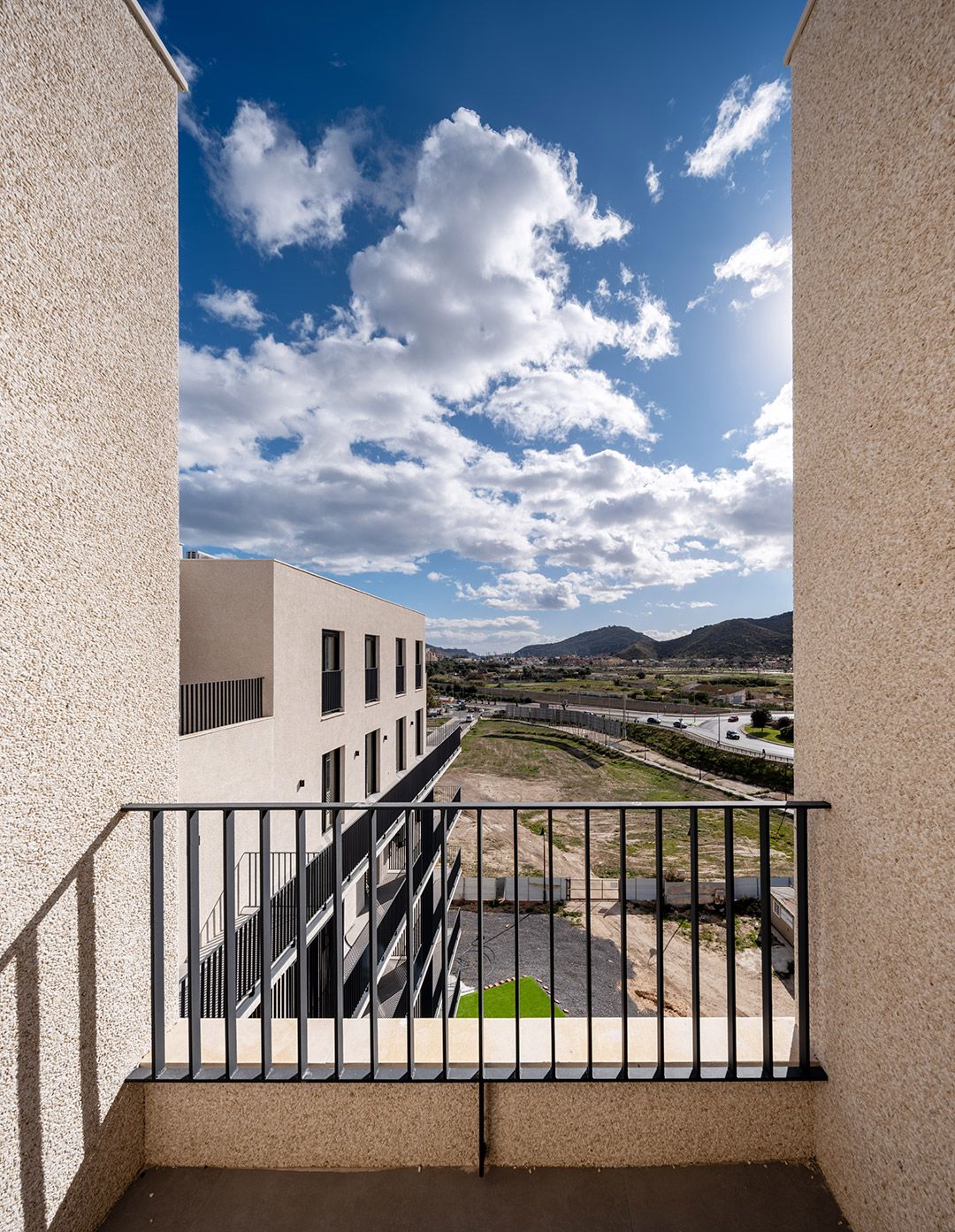 Se busca crear un espacio abierto, en el que poder disfrutar de las maravillosas vistas de la parcela y poder aprovechar las cálidas temperaturas de la zona durante todo el año. Para ello, se proponen unas viviendas con amplias terrazas y ventilación cruzada, que permite una buena ventilación y control de temperatura de manera natural.
